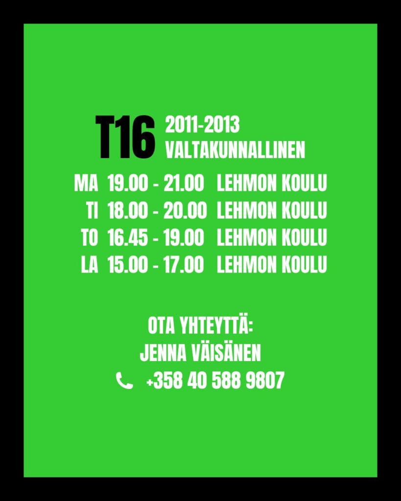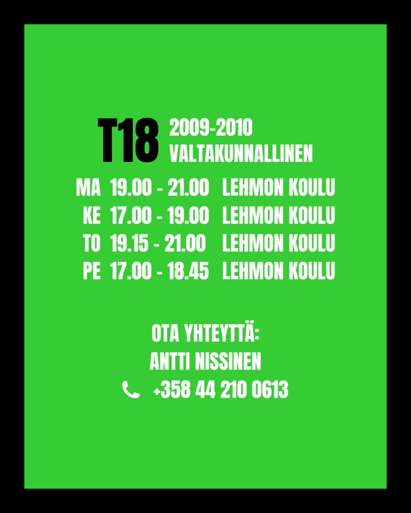 T18 ja T16 joukkueiden Try In -jaksot käynnistyvät maanantaina 4.5.2026 Lehmon liikuntahallilla.